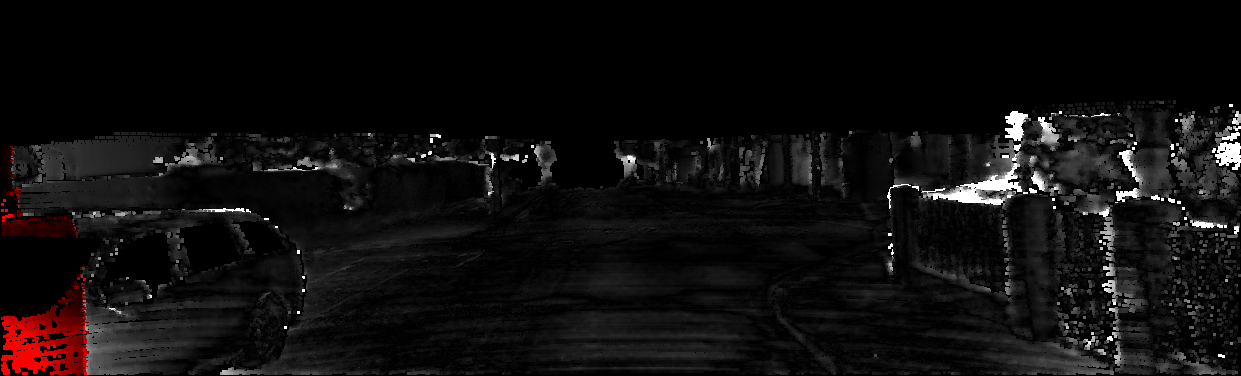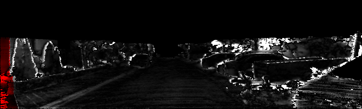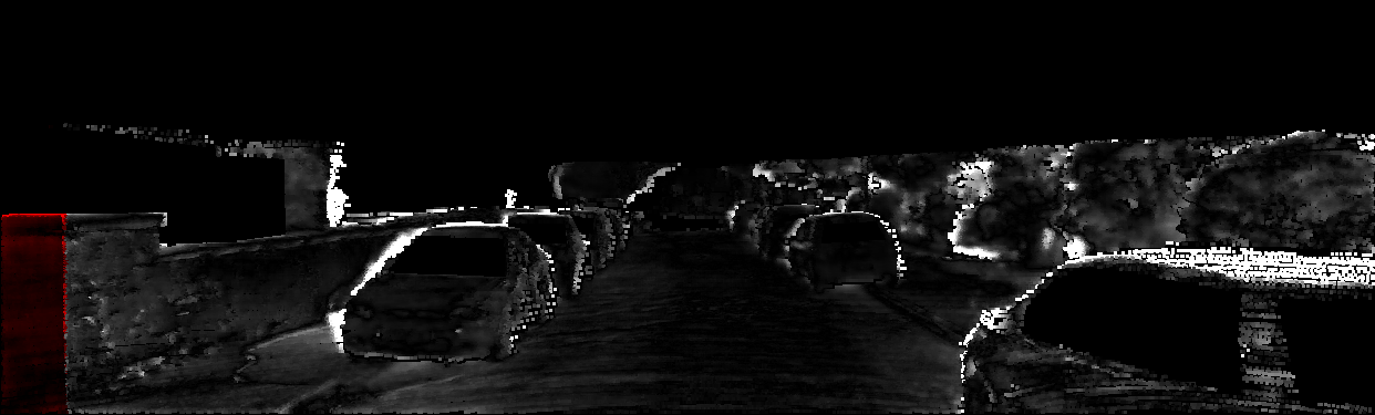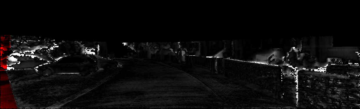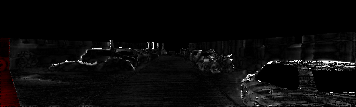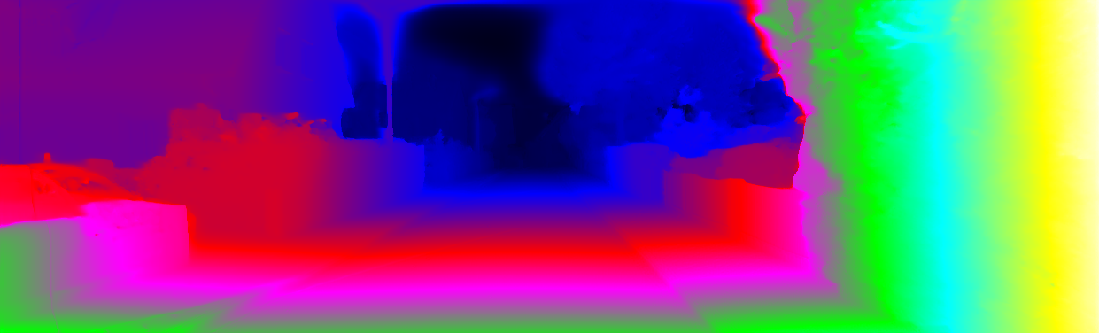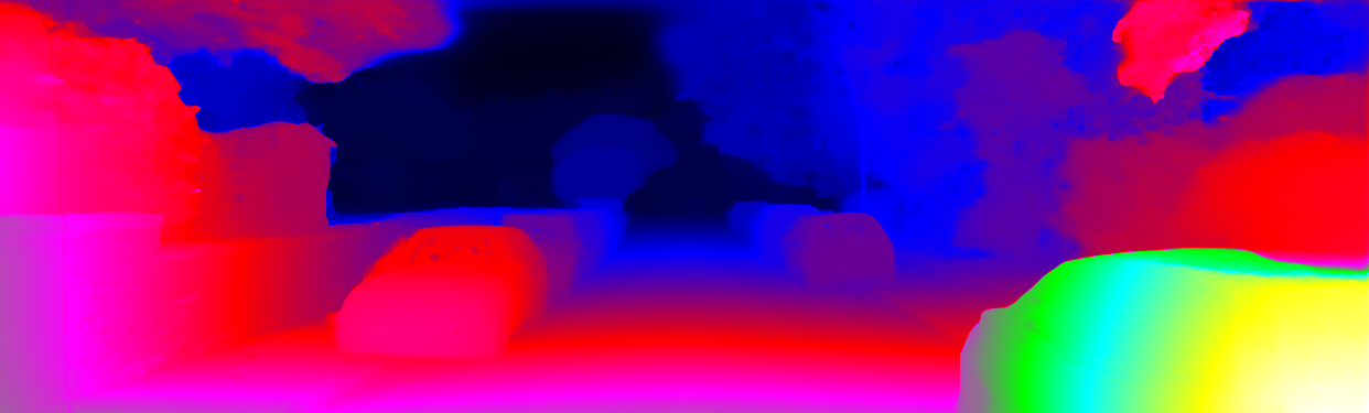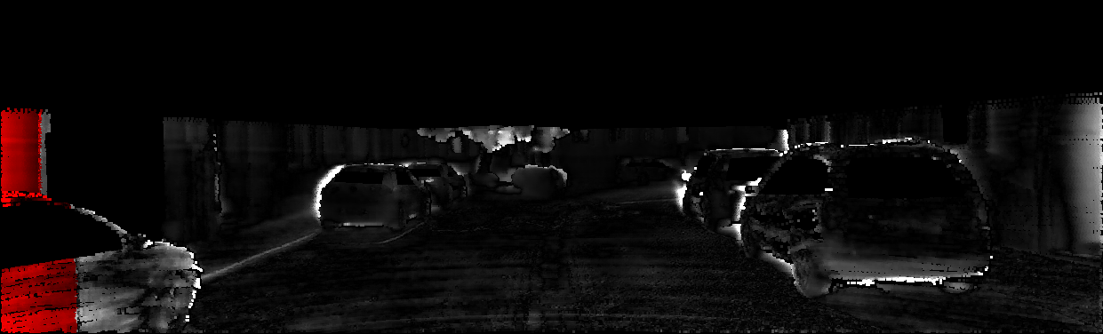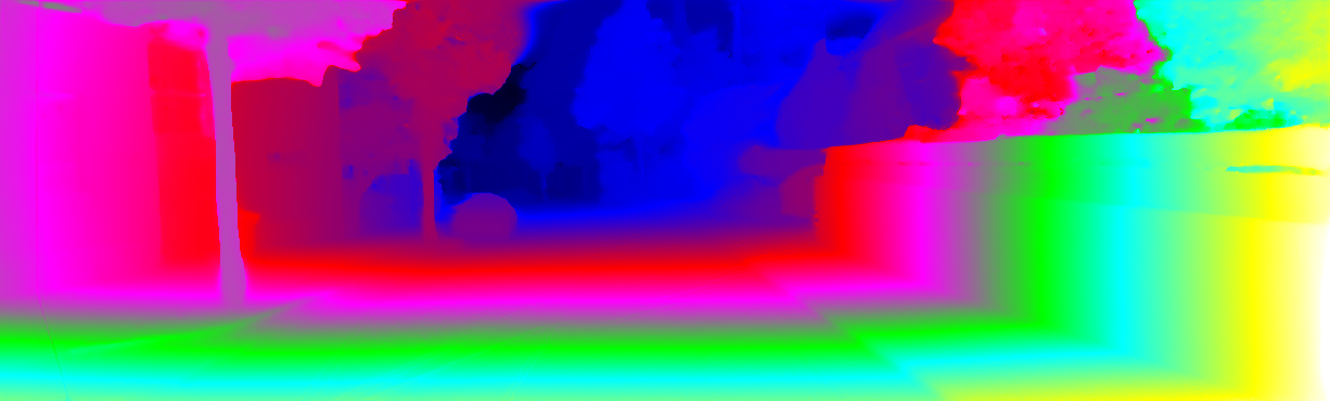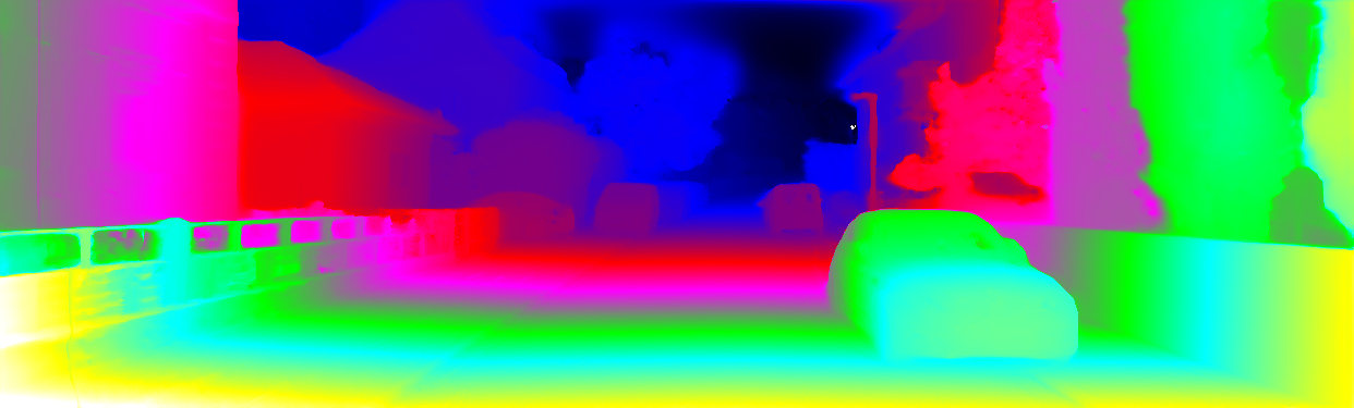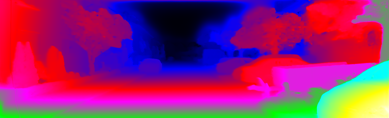 This page provides detailed results for the method(s) selected. For each of the first 20 test images, the number of erroneous pixels at all thresholds is depicted in the table. Underneath, the left input image, the disparity / end-point error map and the estimated (and interpolated) disparity / optical flow map are shown. The error map scales linearly between 0 (black) and >=5 (white) pixels error. Red denotes all occluded pixels, falling outside the image boundaries. The false color map is scaled to the largest ground truth disparity / flow value.