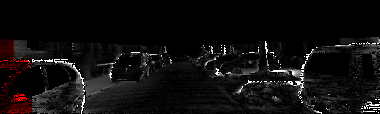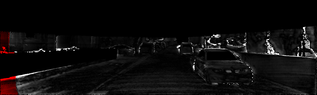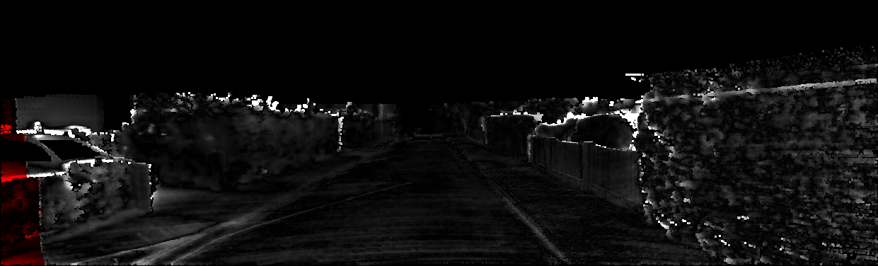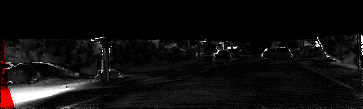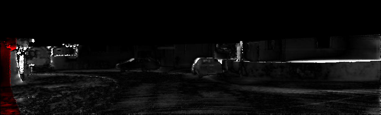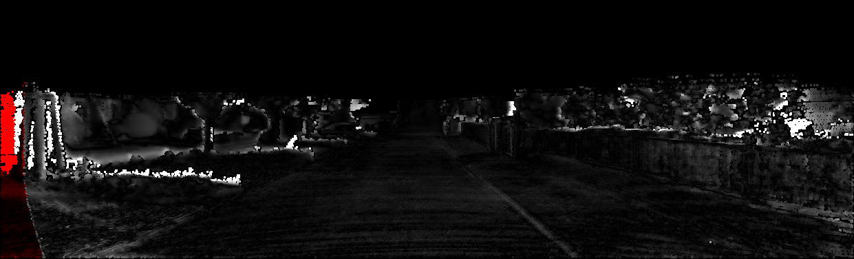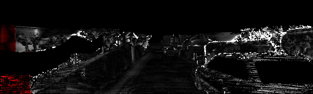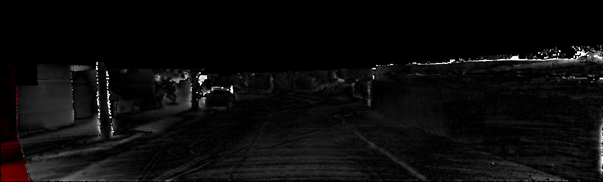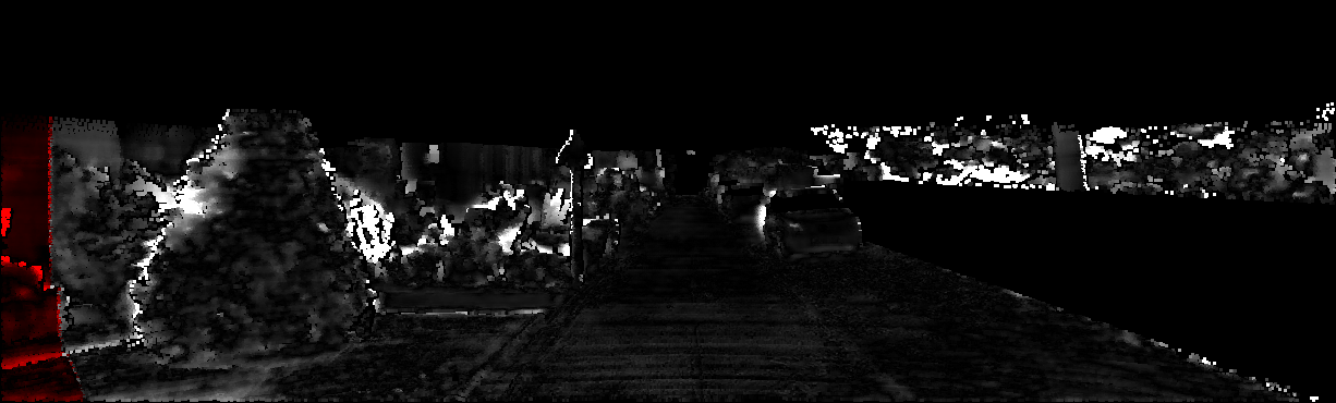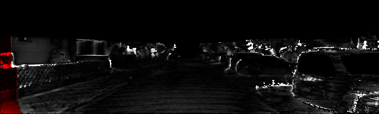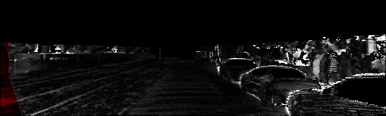 This page provides detailed results for the method(s) selected. For each of the first 20 test images, the number of erroneous pixels at all thresholds is depicted in the table. Underneath, the left input image, the disparity / end-point error map and the estimated (and interpolated) disparity / optical flow map are shown. The error map scales linearly between 0 (black) and >=5 (white) pixels error. Red denotes all occluded pixels, falling outside the image boundaries. The false color map is scaled to the largest ground truth disparity / flow value.