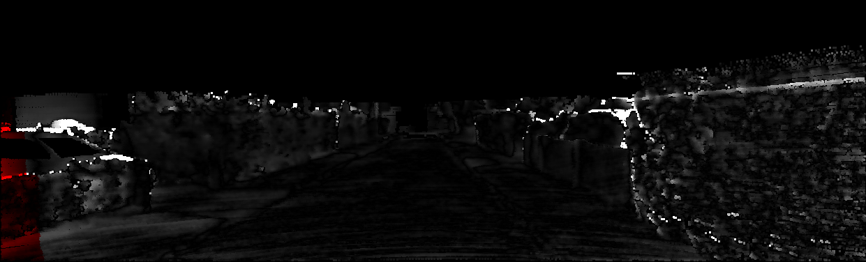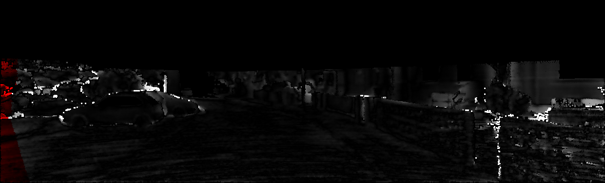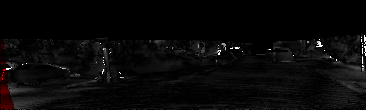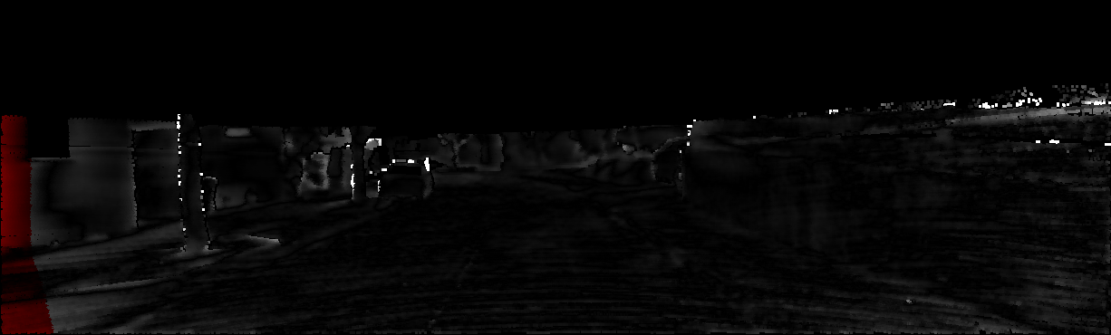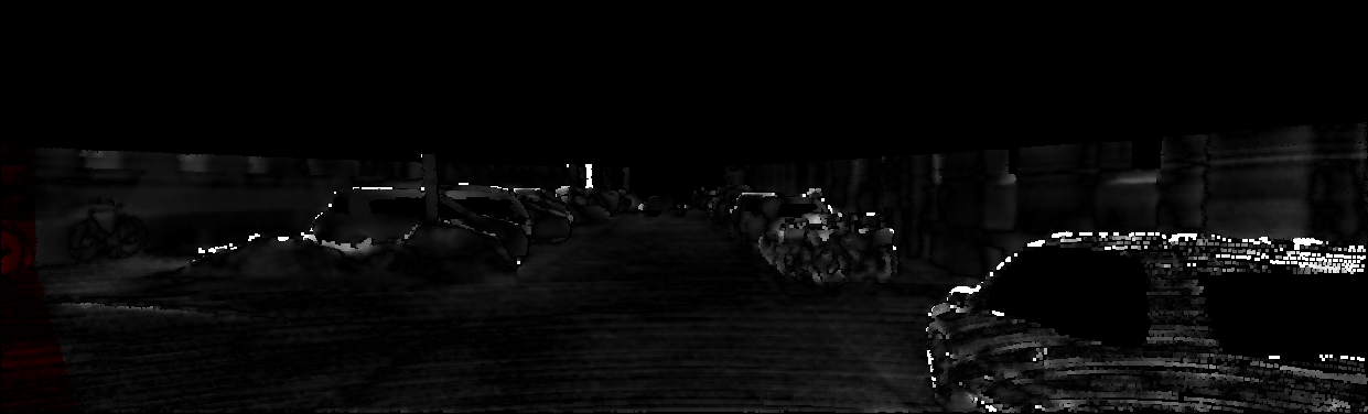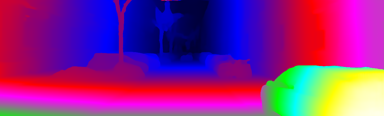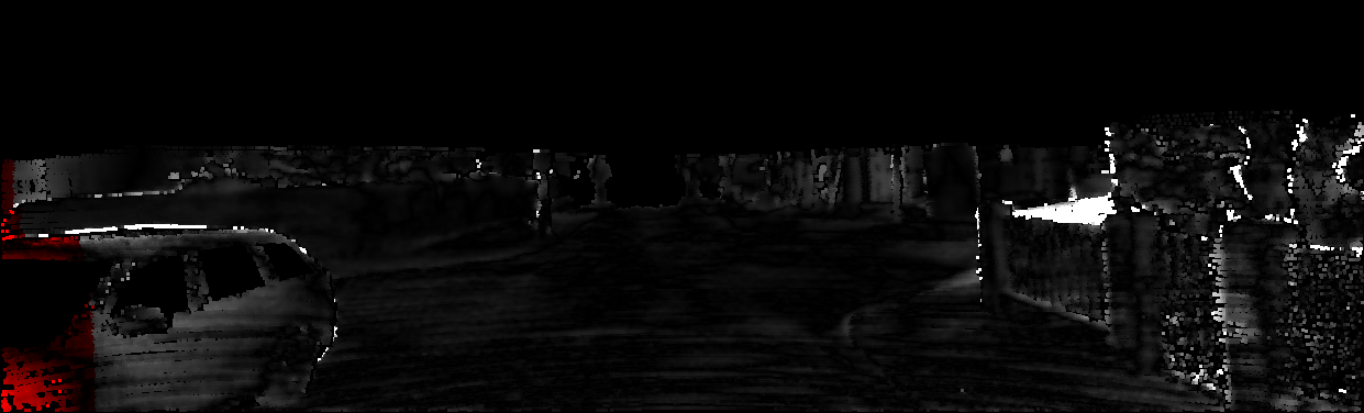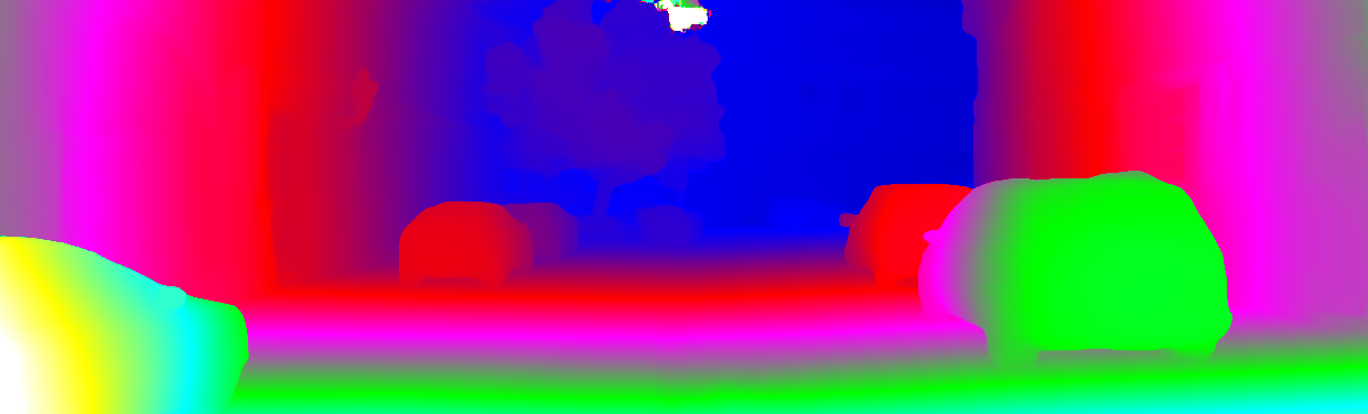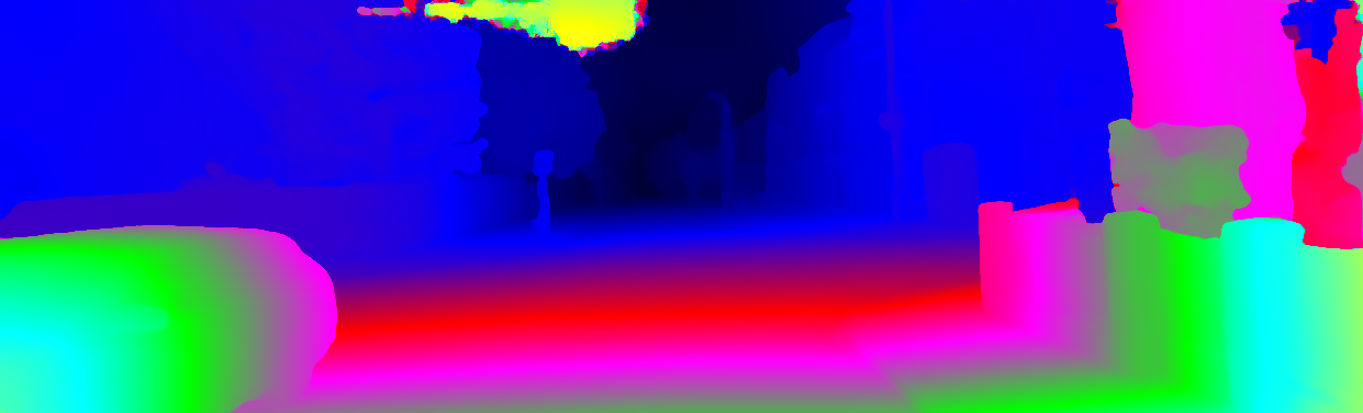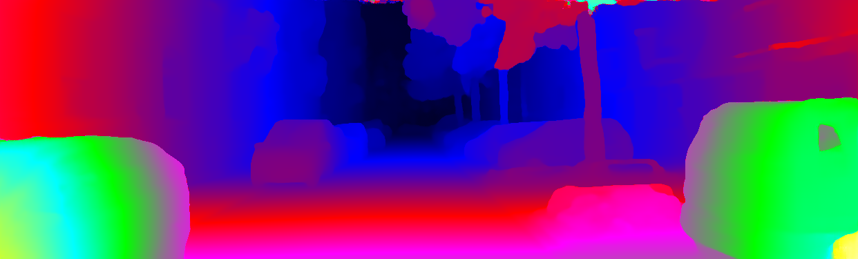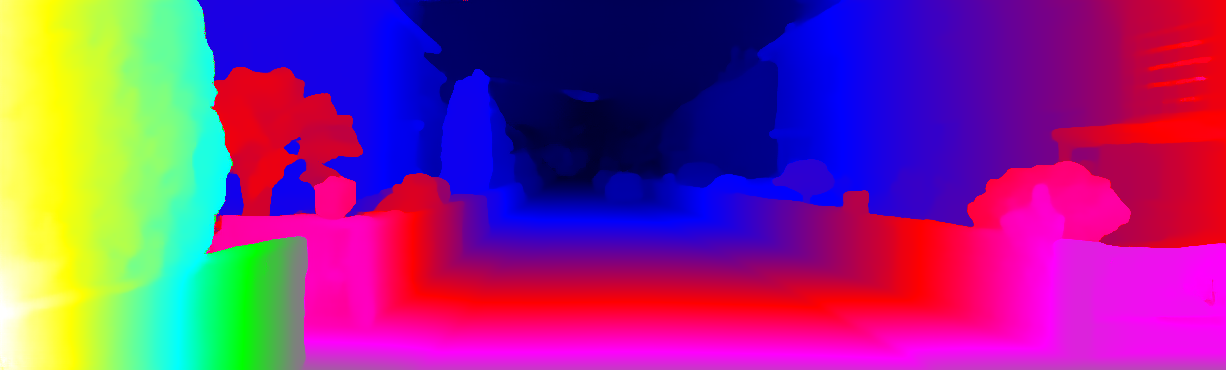 This page provides detailed results for the method(s) selected. For each of the first 20 test images, the number of erroneous pixels at all thresholds is depicted in the table. Underneath, the left input image, the disparity / end-point error map and the estimated (and interpolated) disparity / optical flow map are shown. The error map scales linearly between 0 (black) and >=5 (white) pixels error. Red denotes all occluded pixels, falling outside the image boundaries. The false color map is scaled to the largest ground truth disparity / flow value.